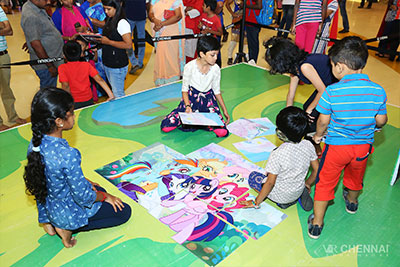 On the weekend before Christmas, VRChennai, in partnership with the toy giant Hasbro, conducted a unique MyLittlePony event at Swargamandapam for our young visitors. Pinkie Pie paid a special visit, making it even more magical. Children who participated in the special, themed activities received special vouchers from Hamleys, FunCity and GAPKids.